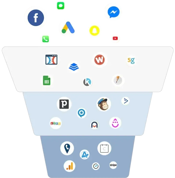 ¡Capte clientes potenciales utilizando nuestras páginas de destino, encuestas, formularios, calendarios, sistema telefónico entrante y más!